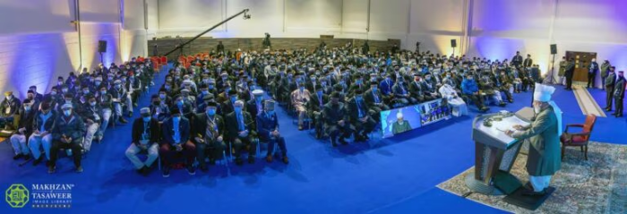 Pred kraj obraćanja, Njegova Svetost osvrnuo se na izvanredan rast organizacije Humanity First u proteklih 30 godina, ističući da, iako su se resursi i doseg proširili, prava mjera služenja leži u nepokolebljivoj predanosti, poniznosti i traženju Allahovog vodstva. Zatim je pozvao članove da gledaju naprijed, ambiciozno planiraju i dodatno povećaju humanitarni utjecaj organizacije.